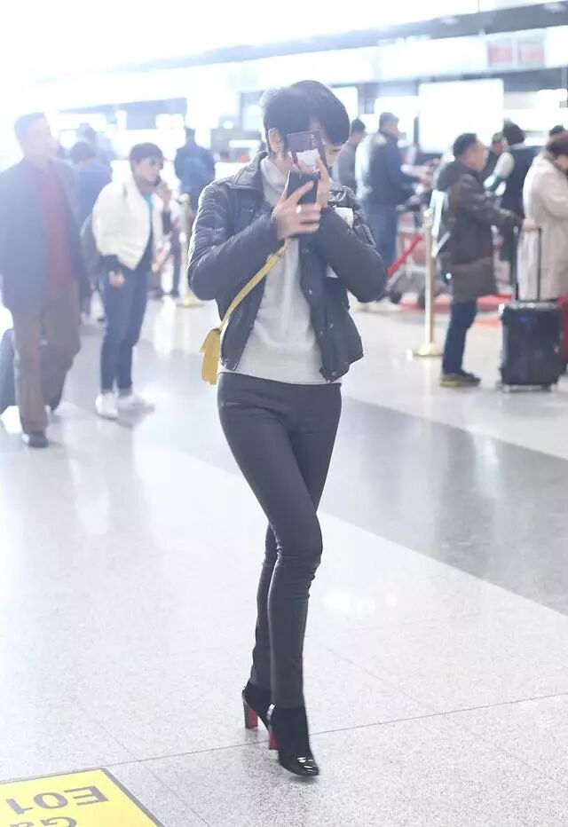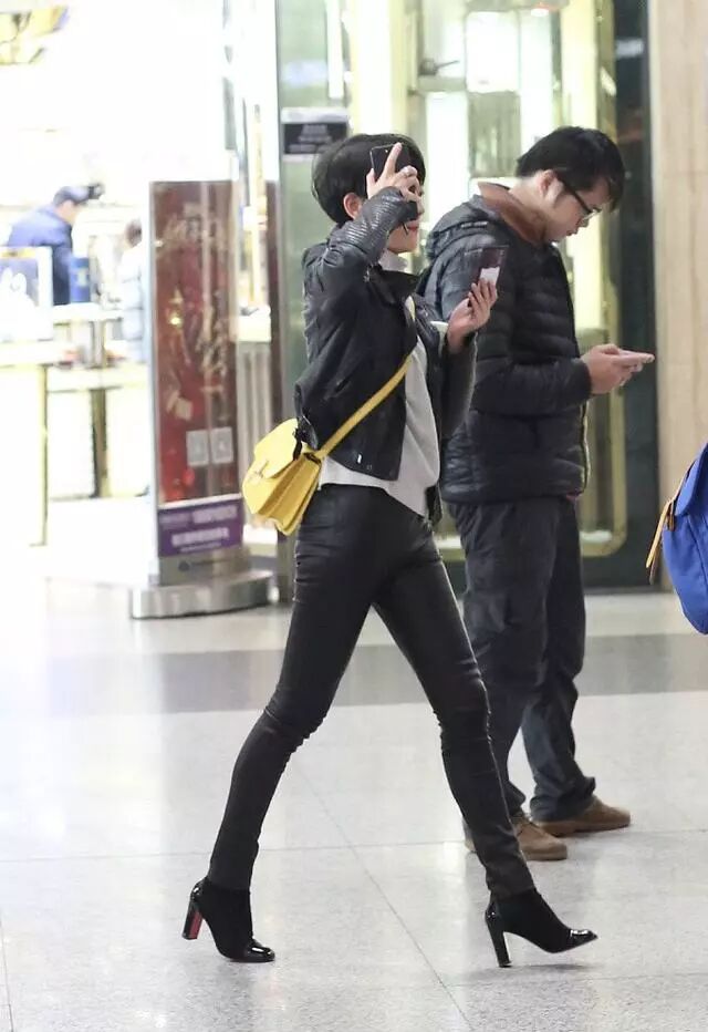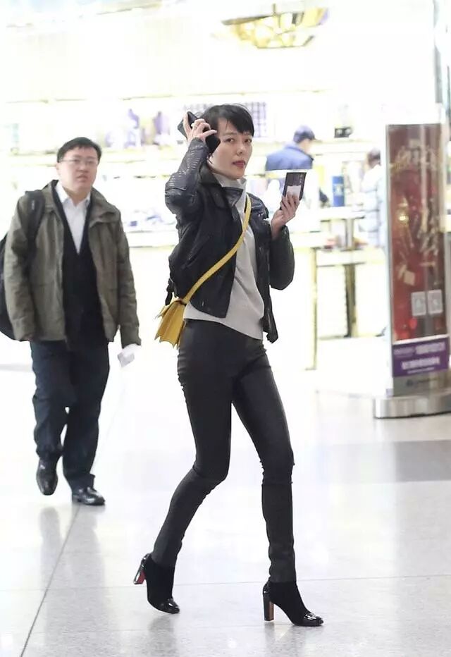 杨乐乐可是知名的支持人,而且也是汪涵的老婆呢!原来只知道她有着不错的家庭和事业,可是在机场的街拍才发现,原来她的身材这么好呢!难得穿皮裤还能这么美的明星!