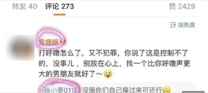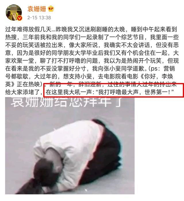 后来斐妈还特别发博澄清自己不打呼,袁姗姗不道歉还阴阳怪气: