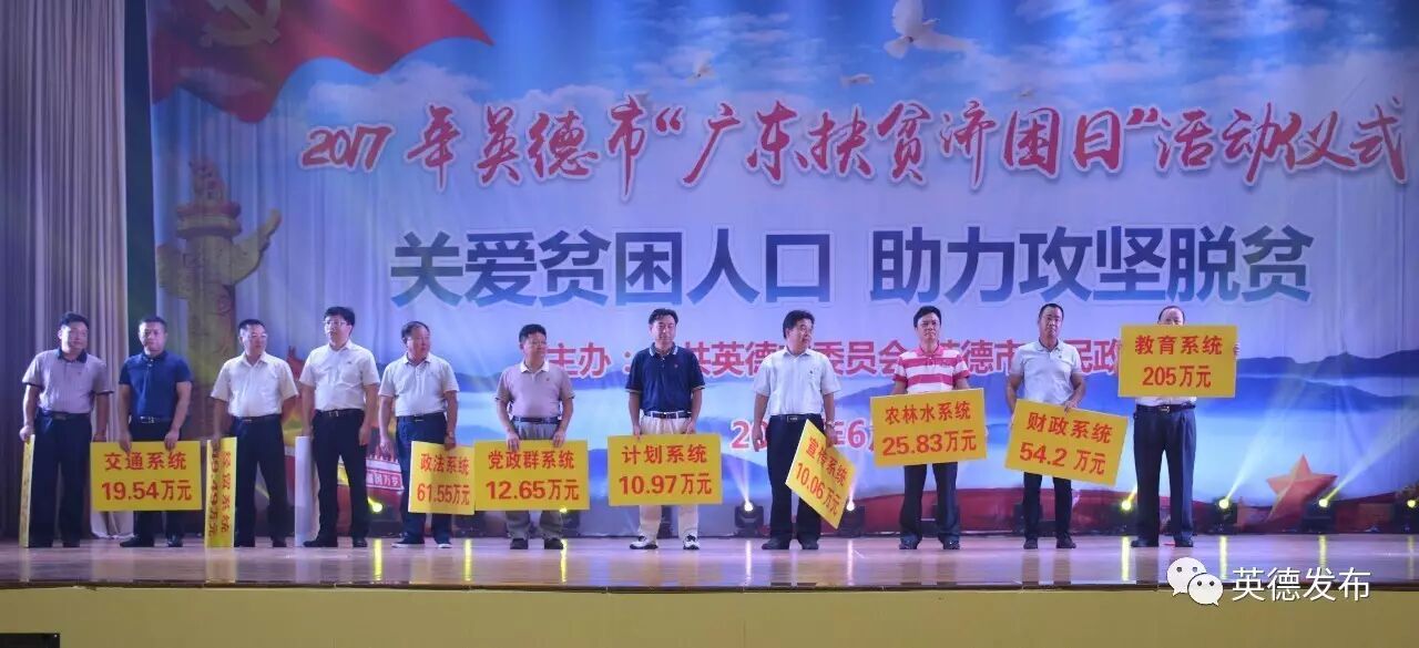 值第八个“广东扶贫济困日”来临之际,今天上午(6月30日),英德市2017年“广东扶贫济困日”活动启动仪式隆重启动。截至目前,全市共收到社会各界爱心人士、爱心企业、各级机关捐款1698.92万元。