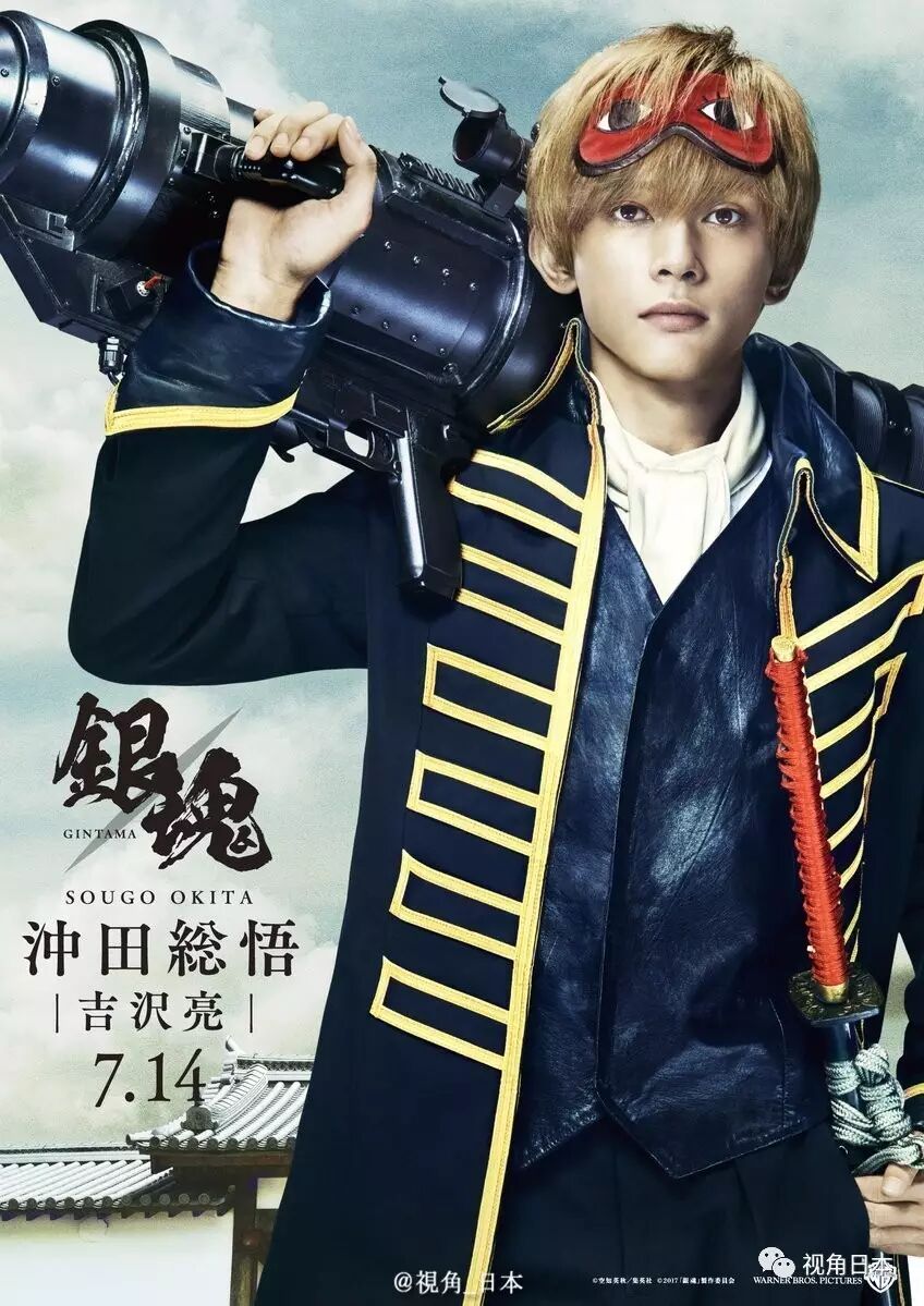 「银魂」真人版公开3名「真选组」角色海报,分别是真选组局长・痴情大猩猩近藤勲(中村勘九郎 饰)。鬼之副长・蛋黄酱星球高贵的王子土方十四郎(柳乐优弥 饰)。以及一番队队长・腹黑毒舌抖S冲田总悟(吉泽亮 饰)。影片将于7.14上映。