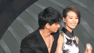 刘诗诗要上台,拉了一下吴奇隆的手,男方牵着不愿意放开