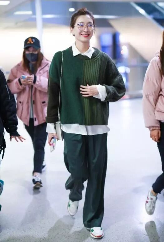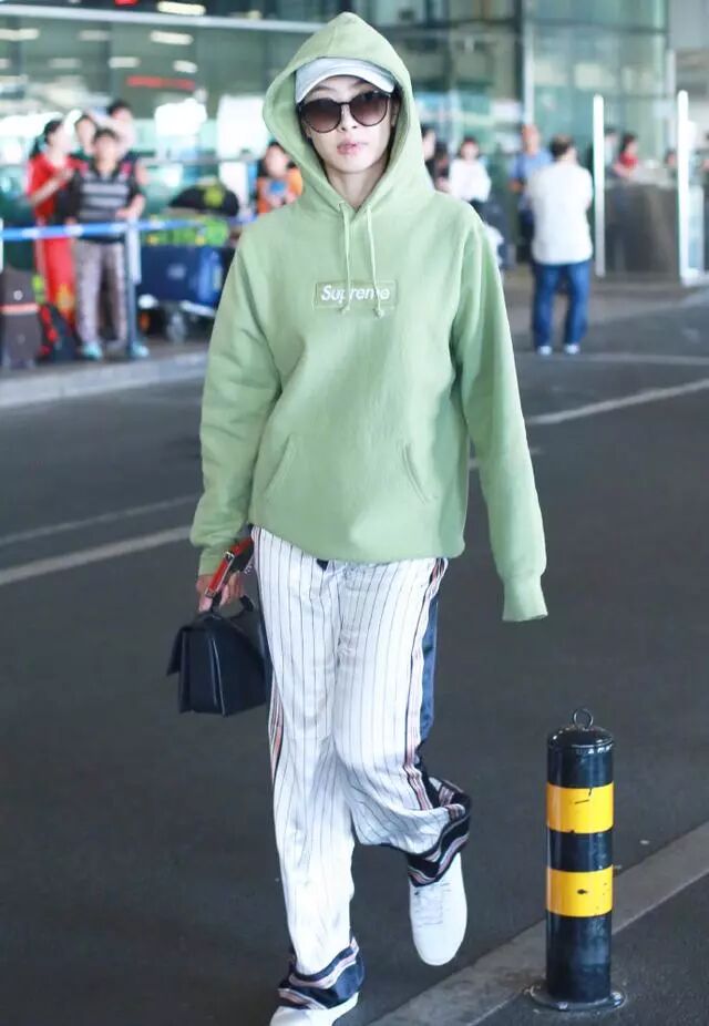 宋茜的薄荷绿卫衣搭配白色运动裤有种迎面扑来的清新感,而且还特别显白