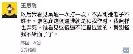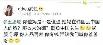 武迪发微博大骂王思聪,说他在韩国丢人了,还欺负中国女生。
