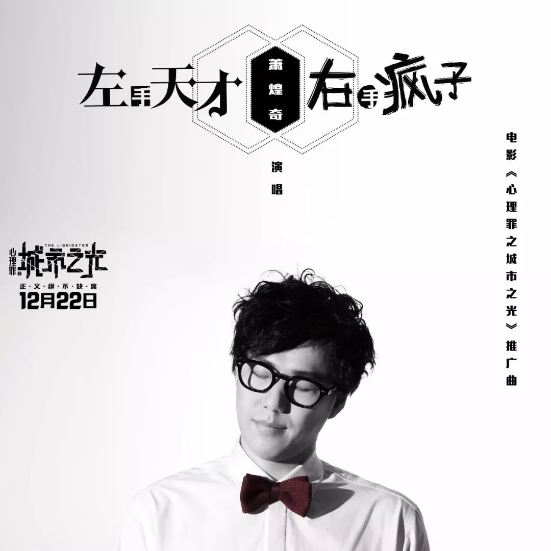 萧煌奇强势献声电影《心理罪之城市之光》,带来电影推广曲《左手天才右手疯子》,完美体现电影中方木这一天才与疯子共存一体矛盾的人物形象,将纠结的人物内心和波折的故事情节用音乐展示在观众面前,曲风及制作延续萧煌奇一贯的高水准,起乘有致,略伤感的基调中又带着希望,淋漓尽致的再现了片中男主角纠结的内心状态。