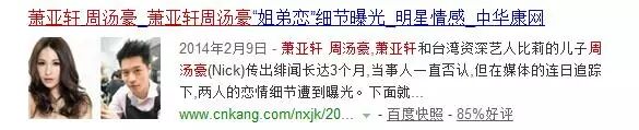 和比自己小5岁的2014年7月对外承认恋情后,因男方长相帅气,打扮洋气,又家产丰富,被外界一直看好,认为是萧亚轩历届男友中最登对,最有希望修成正果的一对。两人珠联壁合,成双入对的出入各种场所,微薄里更是甜蜜“撒椒”,同框入镜的照片辣的一众妹纸,直呼羡慕。