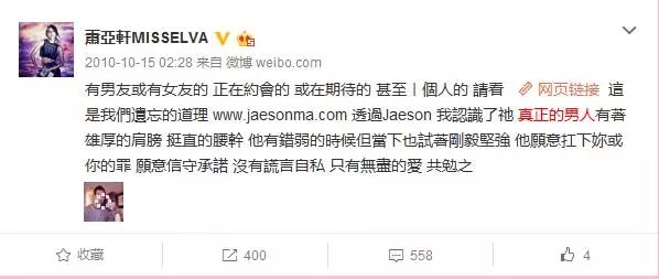 就在一众粉丝呼唤萧姐夫的时侯,去年7月份,两人的微薄却不再互动,这一风吹草动也引起了媒体敏觉的的分手猜测。虽然众粉丝依然默默的祝福能修成正果,但最终,萧亚轩还是潇洒的承认了分手。