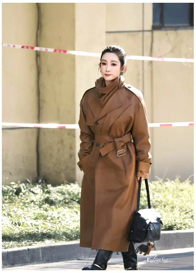 像这种偏浓郁的棕色长大衣,真的很适合成熟一点的女生。颜色有质感,视觉上先天就比浅色更稳重,也更容易穿出“我很会穿”的感觉。再加上腰带和大翻领,整个人会显得特别利落,哪怕里面搭得简单,也不会寡淡。