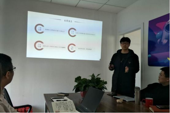 “打造自己的亮点”是王志优同学对19年工作的要求,他对自己一年的工作进行了总结阐述,20多页的ppt让大家对一会的吃饭时间感到一丝丝担忧。