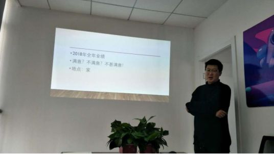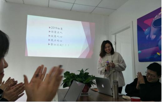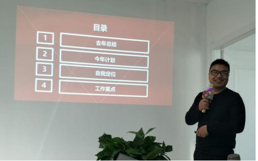 大会开始,英俊的商锐同学一马当先开始了自己的述职演讲,发烧咳嗽阻挡不了他的热情,煽情的话语带我们领略了从公司创立初始到现在的种种艰辛。他表示:“2018年对自己的工作不甚满意,可以给自己打75分,作为一支狼性的团队,2019年会更加展示狼的野性。”