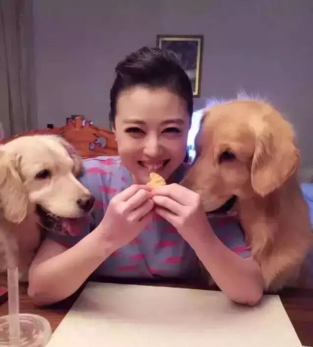 爱狗如命的周海媚养了八只金毛。她亲切地叫两只大狗Tommy爸&Jenny妈。