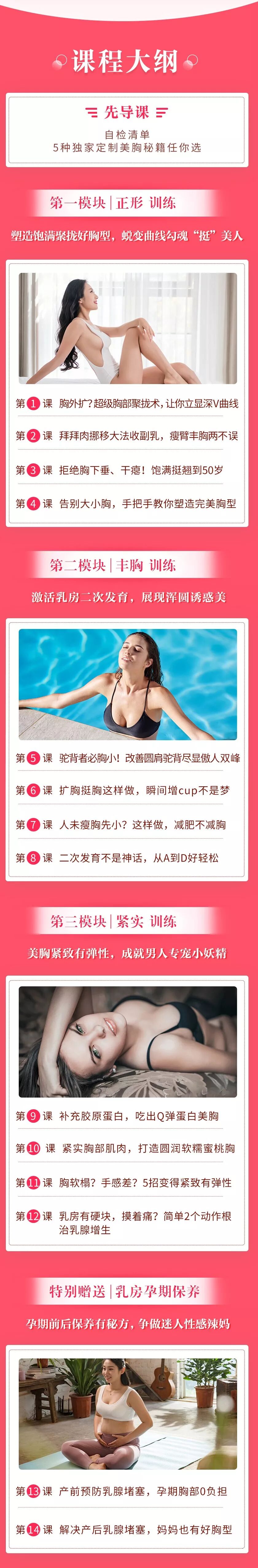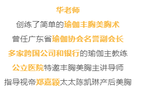 这次和华老师合作,深入打造了这门 不用吃药,不用挨刀的丰胸美胸瑜伽术《学美胸丰胸瑜伽,饱满挺翘到50岁》,内容干货满满,惊喜不断!