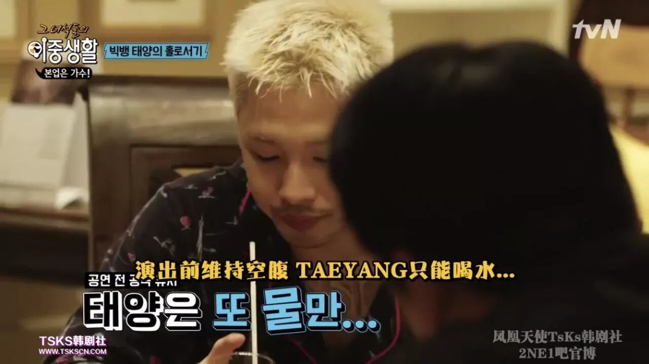 到达了目的地之后,经纪人又点了一桌子的美食作为晚餐,有肉有汤有甜点。而太阳只能捧着白开水,看着经纪人将整整一桌子的食物吃完。原来,歌手演出的准备期间是如此辛苦的度过的。