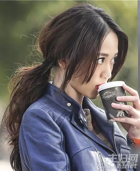 斜分贴耳的刘海设计女王范儿十足,将长发向后简单低扎成利落的低马尾辫既显瘦又更有气场,简单清新的低马尾扎发OL范儿十足。