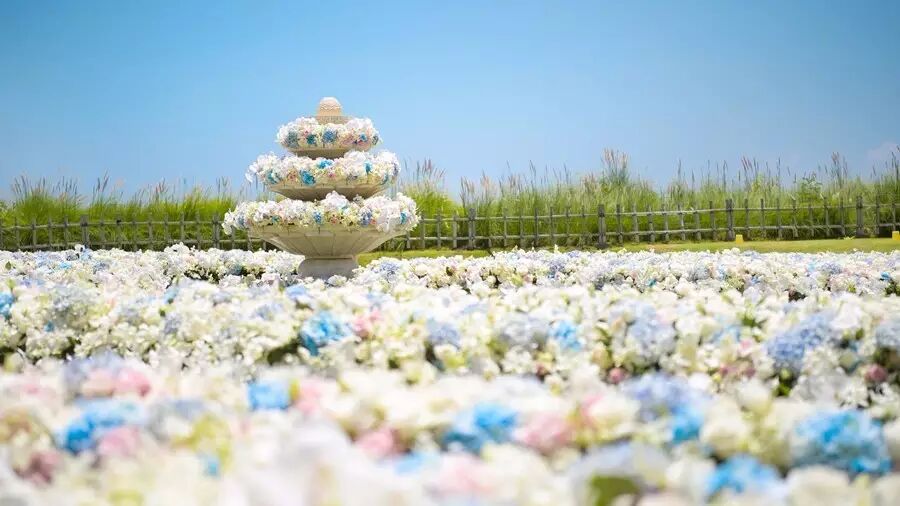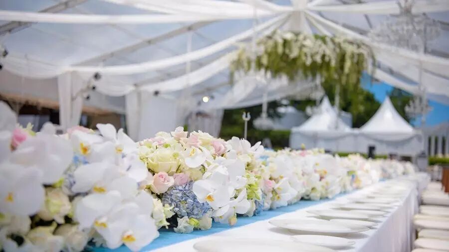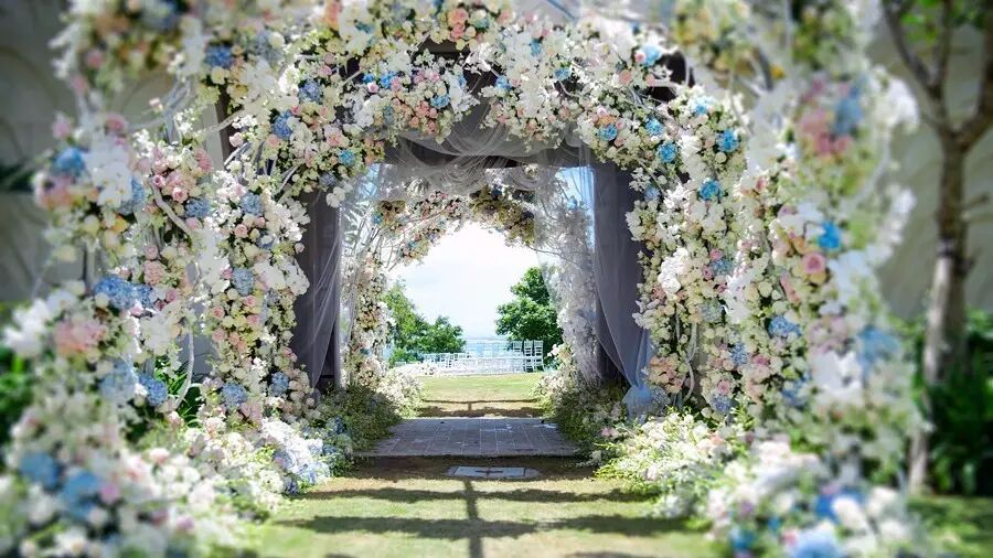 为了营造最美的婚礼现场,roseonly从厄瓜多尔、哥伦比亚、荷兰、雅加达等地将50余万支花材运抵巴厘岛,包括世界顶级的厄瓜多尔白玫瑰、粉玫瑰、蓝色绣球、粉色紫罗兰、白色蝴蝶兰等。