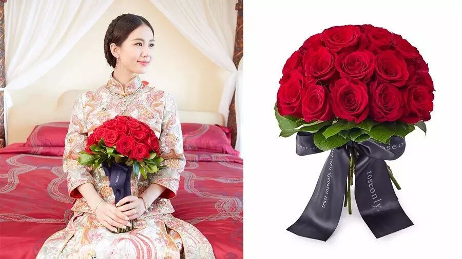 前往roseonly官网,即可购买诗诗同款roseonly经典永续玫瑰捧花。由27朵厄瓜多尔顶级玫瑰簇拥绽放,寓意“爱妻”的捧花,愿所有女孩都能嫁给爱情。