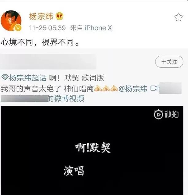 但没想到,在刘宇宁发布歌曲5小时之后,杨宗纬也紧跟着转发了个微博,并且设置成仅粉丝可见。