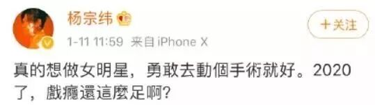 前几天,许久未露面的他发微博称:“真的想做女明星,勇敢去动个手术就好。2020了,戏瘾还这么足啊?”不过很快就删除了。有网友爆料这其实和刘宇宁、吴青峰有关。