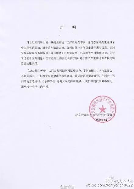 昨天,李易峰所属的公司终于发声明回应出轨传言。表示之前关于杨幂出轨李易峰的消息纯属谣言,希望大家不要再揣测两人关系。