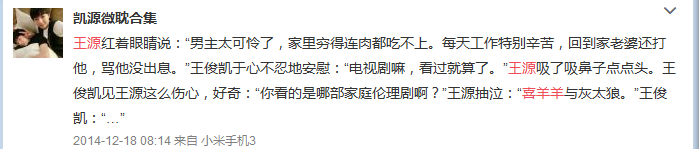 又或者,王源童鞋仅仅只是因为羊羊们丰富的表情而爱上了喜羊羊,毕竟王源童鞋常常无聊时就制作表情包,所以找到行业知己的心情想必粉丝们都懂了。
