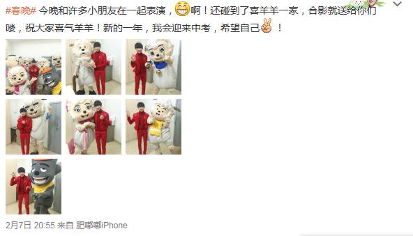 这次三小只组队上春晚,想必都是灰常高兴的,尤其是王源,终于能和自己喜爱的羊羊们同台表演了呢!舞台上制造的机会不多,后台就必须抢占先机,来张合照先: