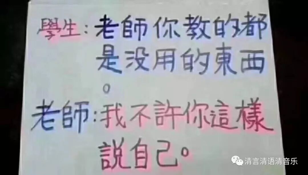 到了晚上更是变成了:学生:“老师你教的都是没用的东西”老师:“我不许你这样说自己。”的段子了。