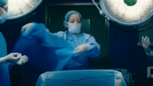 做完手术的赵薇,跟着同事去一一查床。
