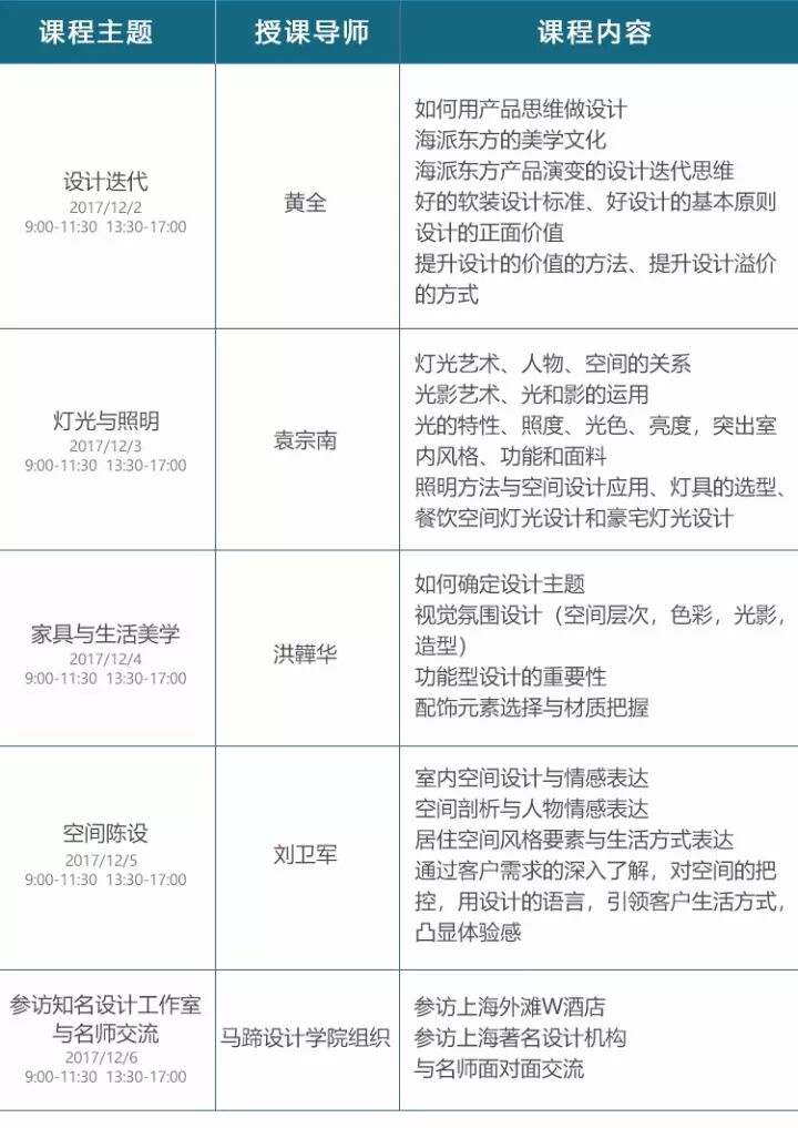 第三期软装特训营将于2017年12月2日至2017年12月6日共5天开课,上课地点上海。