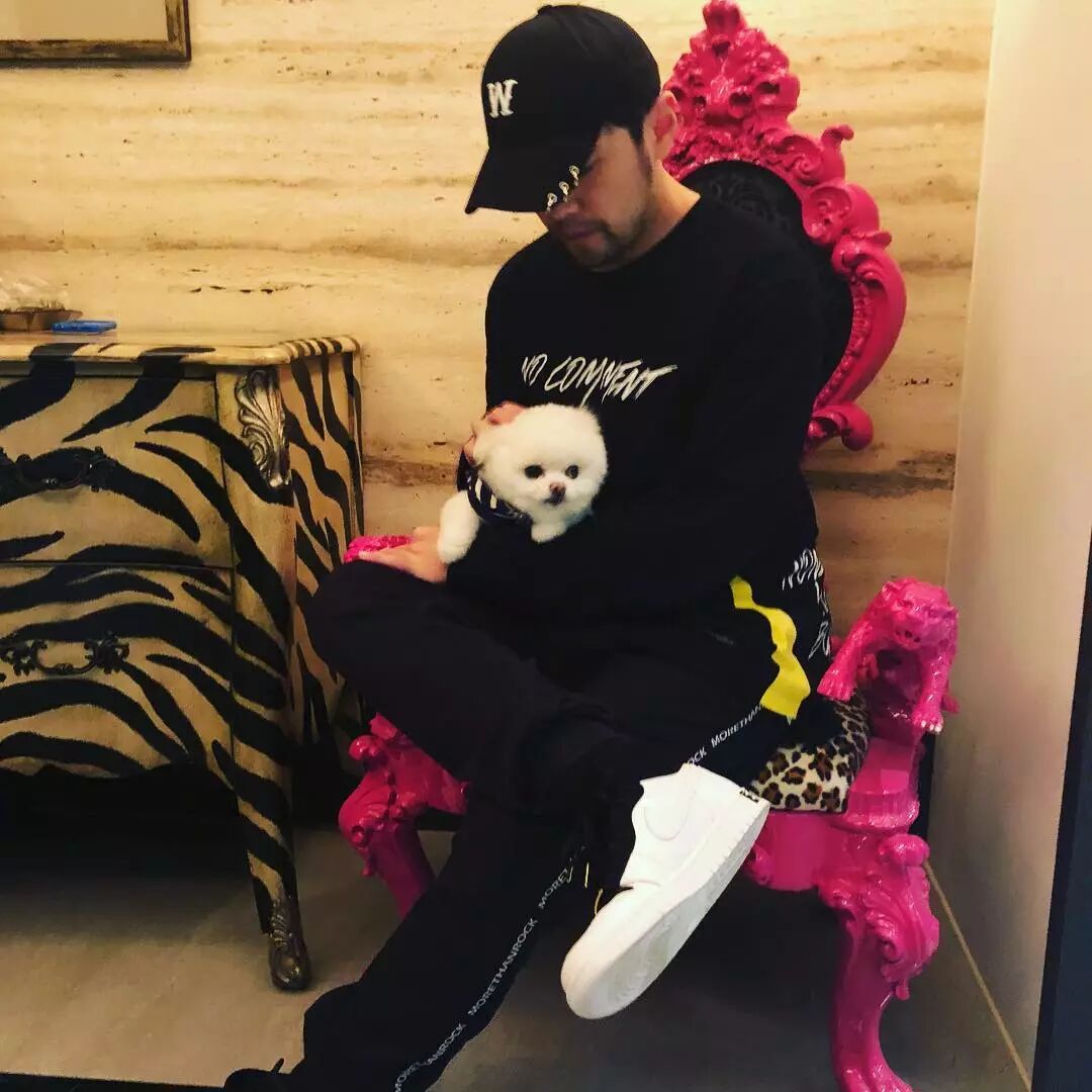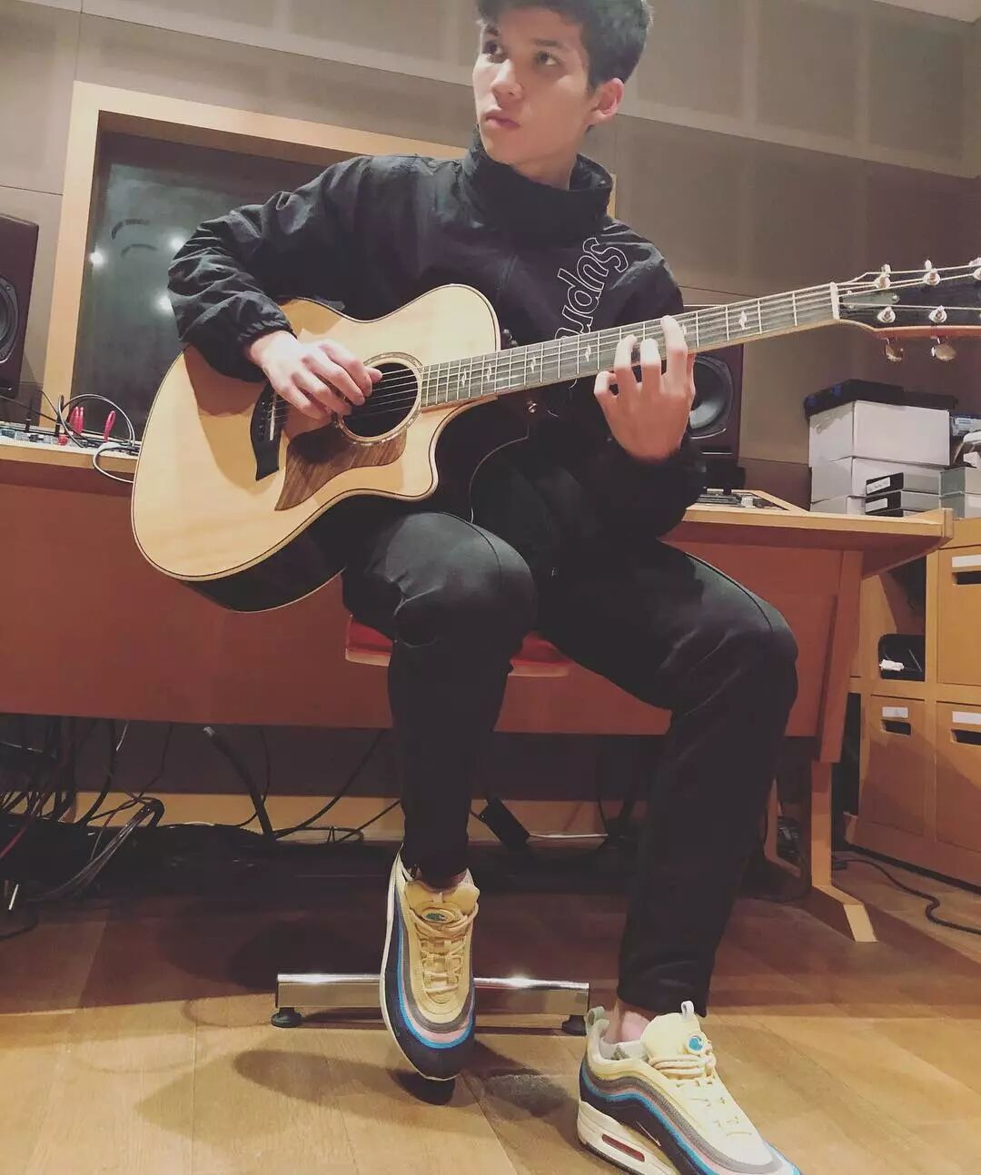 最近派伟俊在录音室,同样是一身黑色运动装搭配 Air Max 1/97,果然是师传搭配 ~