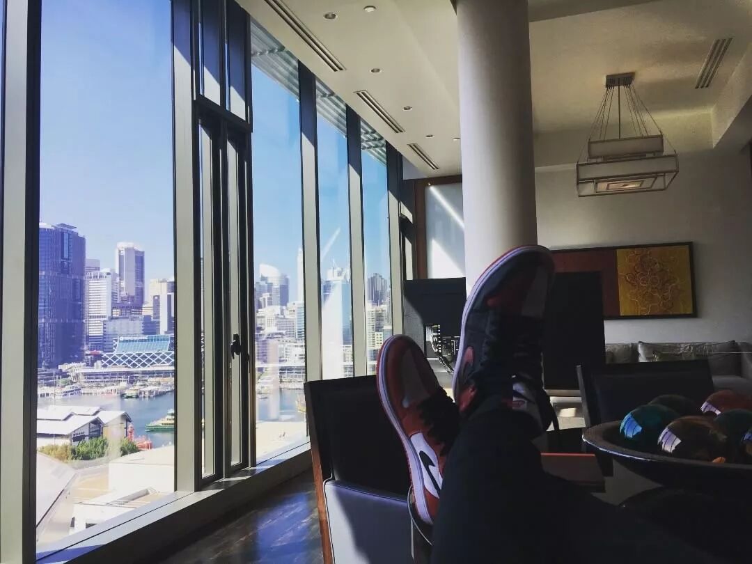 4 月初杰伦又飞到了悉尼开演唱会,酒店随手 po 张照片,又是全球限量 2300 双的 Air Jordan 1「Homage to Home」!