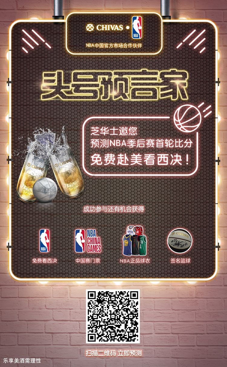 NBA 球衣、官方纪念品、签名篮球、芝华士派对早鸟票等(所有参与用户中随机抽取)。
