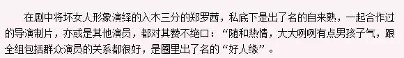 但其实老演坏角色的郑罗茜在私底下是一个特别可爱的女孩儿。合作过的导演、剧组工作人员或者是同行对她的评价都特别好,她在圈里有着很好的人缘。