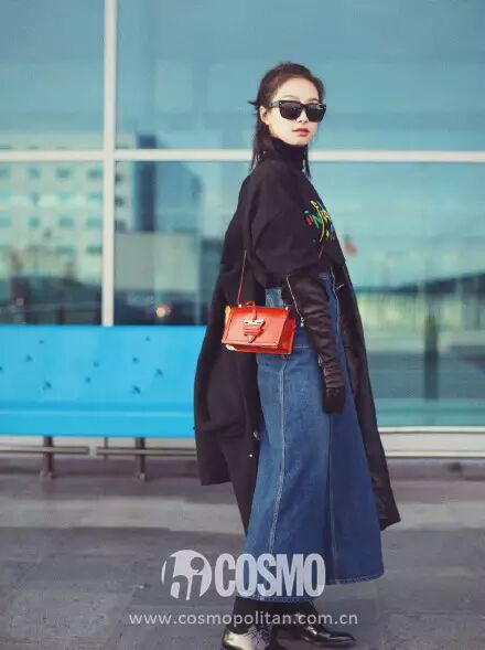 杨幂与袁姗姗选择的黄色mini款,活泼的明黄色在冬日造型里的缀饰就是要人眼前一亮,mini的款式也不会有负担。