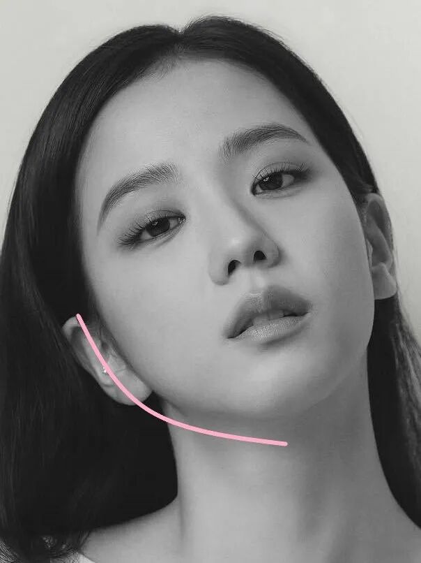 而金智秀的情况是,下半张脸不够骨感,下颌骨体量小而非常容易堆肉,稍一仰头会显得下半张脸很膨胀。