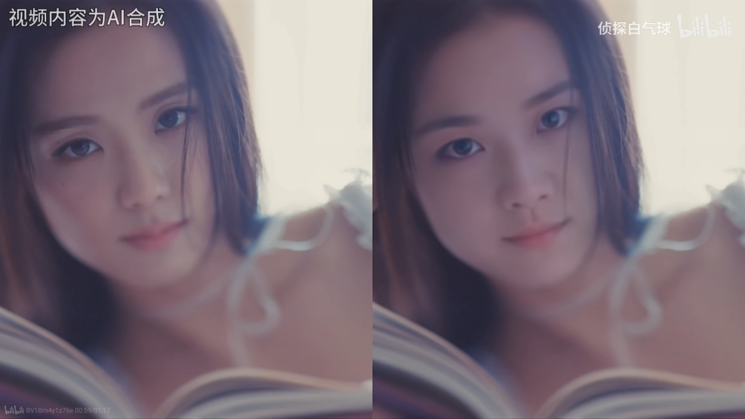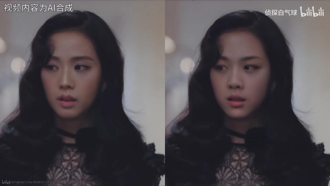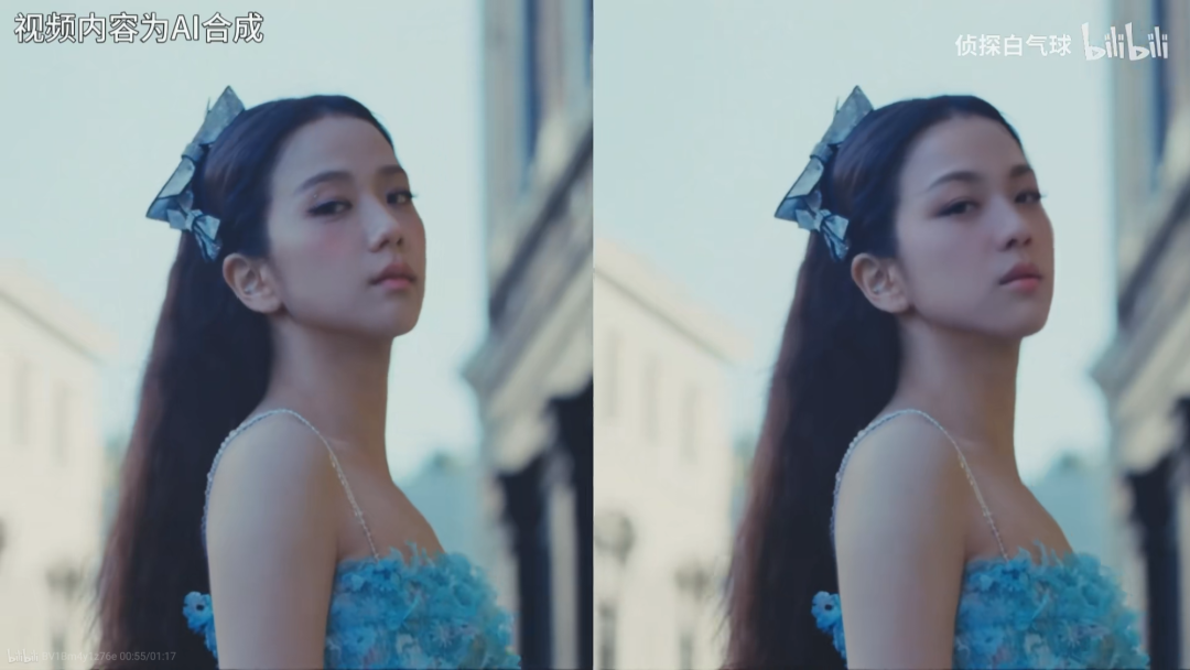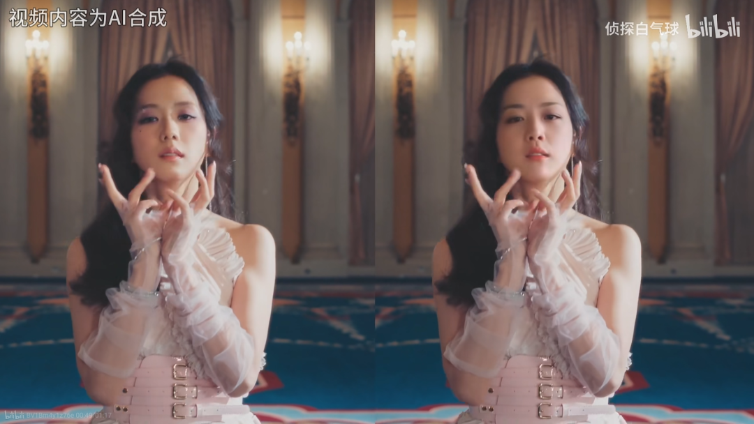 这里的情绪感是指作为演员应该具有的层次丰富的情绪,有一个现成的“高配”--汤唯。都说俩人长得像,包括换脸金智秀的mv很多镜头几乎一模一样。(图源哔哩哔哩“侦探白气球”)