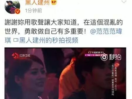 另一边呢,阿娇力挺张韶涵,获得网友一篇称赞。