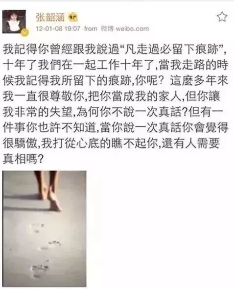 张韶涵很快回应,曾经把他当家人,现在打从心底瞧不起。
