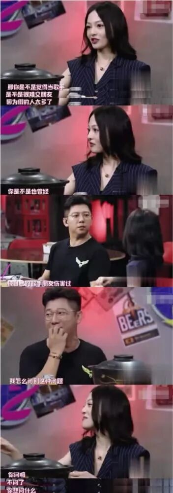 海泉发难:“你是不是也曾经,被自己的歌手同行伤害过?”后来感觉问得有点过分了,赶紧说“不问了”。