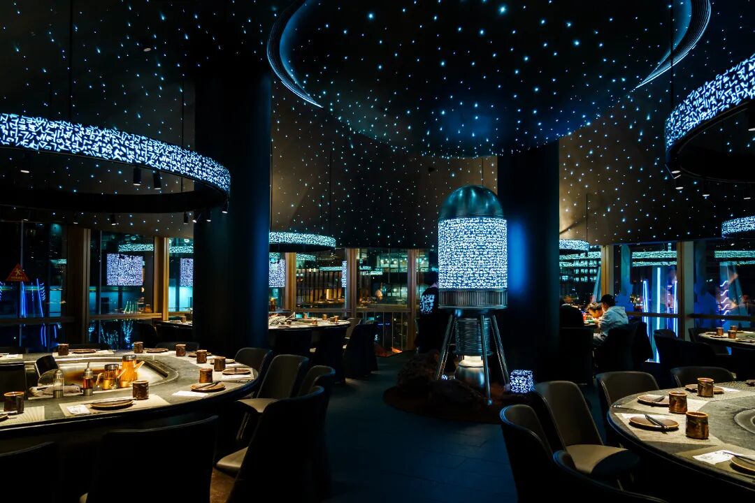 粗粝的砂石、风化的熔岩洞、浪漫的星空顶......在宇宙星空穹顶下来一场火星用餐氛围体验,可容纳约55人的星空顶大厅,约8-12人的太空舱包厢和熔岩洞包厢,满足多种用餐需求。同时看大厨上演铁板Live表演,享受视觉、听觉、味觉三重飨宴。
