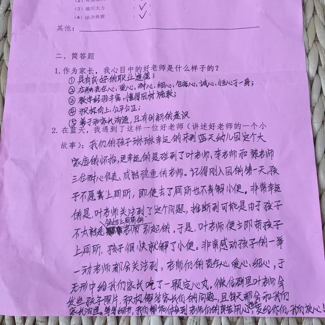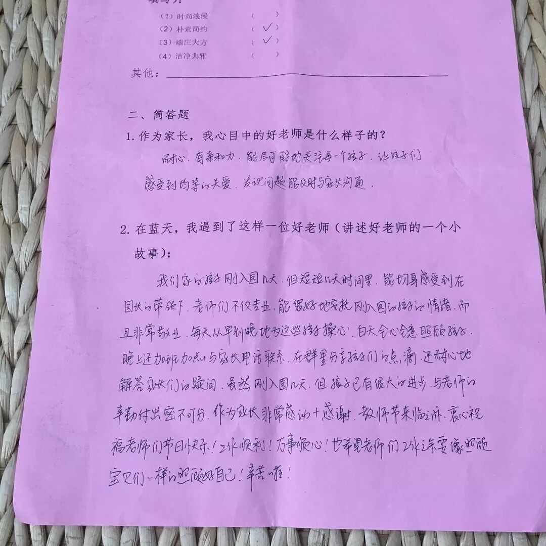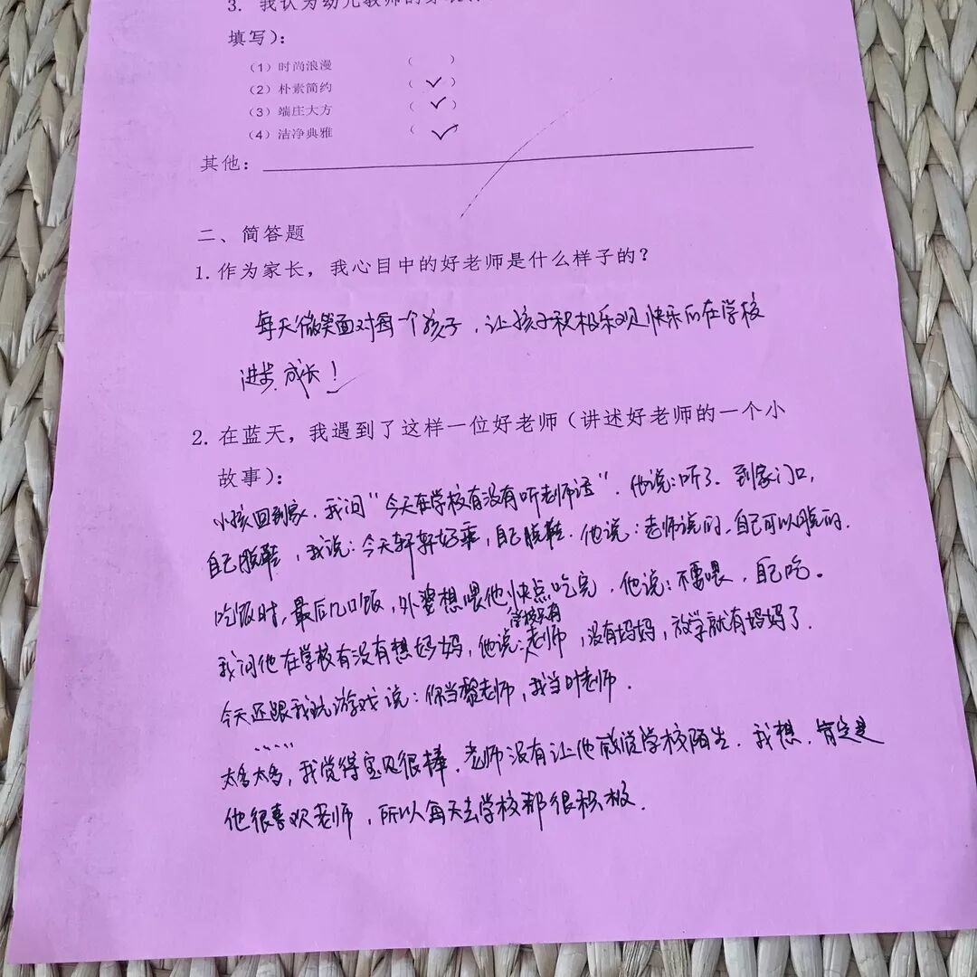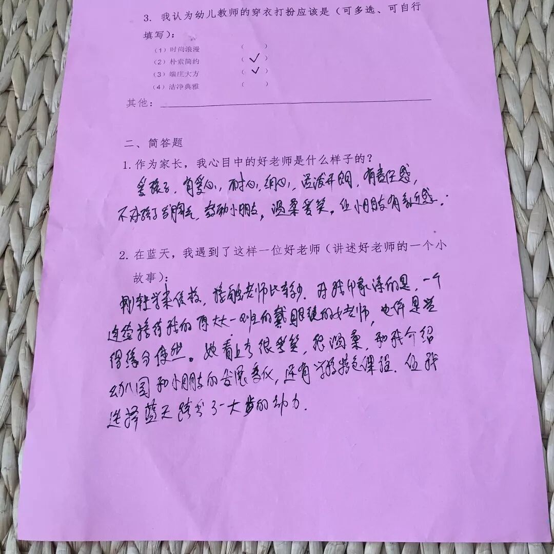 一张纸,记录满满的感动,一张纸,收获沉甸的幸福,一张纸,承载的内容太多太多……教师节来临之际,我园邀请家长朋友填写了一份调查问卷《你心目中优秀的蓝天教师》,一起来看看家长心目中那些优秀的教师,和那些动人的小故事……