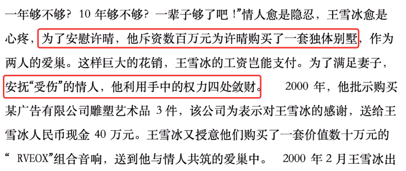 除了他本人的奢靡,再一个就是因为许晴贪污受贿。