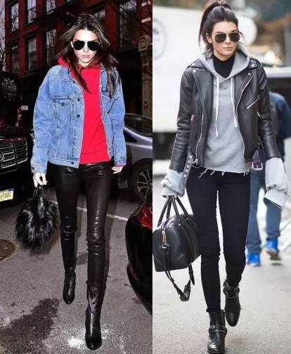 卫衣+紧身裤+牛仔外套