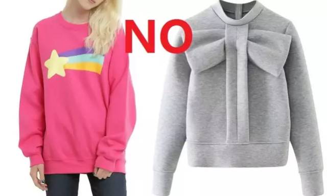 卫衣其实很少会买瞎,一般的卫衣都很好搭,但是这几种卫衣一定要避开!那就是少女风格严重、又很夸张的蝴蝶结、颜色很花哨炸眼的卫衣,这些都可以直接从你的购物名单上删除啦!