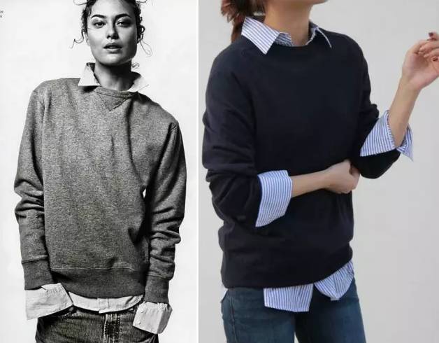 基本款宽松套头卫衣+衬衫,给人干净乖巧的感觉,身材好的仙女也可以穿出酷酷的街头风,下半身配紧身牛仔裤或者裙子,休闲又修身。