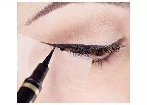 如果你总是化不好眼线,可以借助透明胶带,在眼尾与眉尾处贴上一小条胶带,这样用眼线笔拉眼尾的角度时,就会比较容易成功。胶带撕掉后,别忘了底妆要再做修补哦。