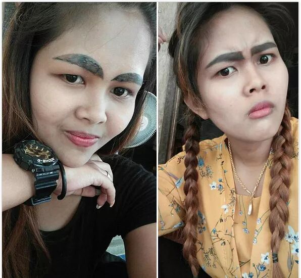 自从韩式平眉流行以来,我已经见过好多把眉毛画成毛毛虫的妹子啦,当然啦,这个小错误我以前也犯过,谁叫它的风刮得那么大呢?