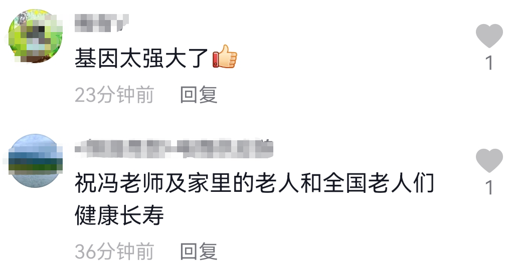 网友们纷纷留言,祝冯巩一家老人健康长寿,同时也有很多人感叹“冯氏基因”太强大。