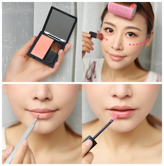 可以用桃粉色的唇彩涂刷在裸色唇膏之上