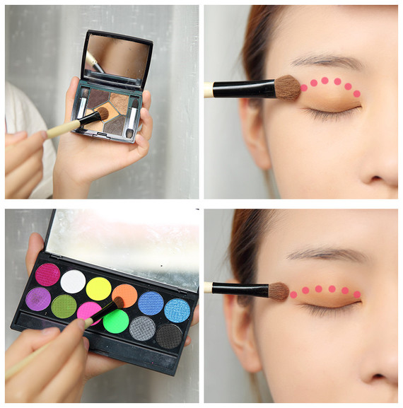 2、再占取适量的橙色眼影,晕染在双眼皮线内