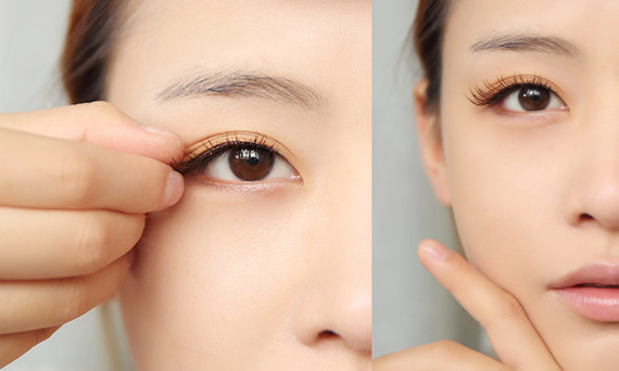 贴好后要轻轻往上推一推以防睫毛贴得太垂