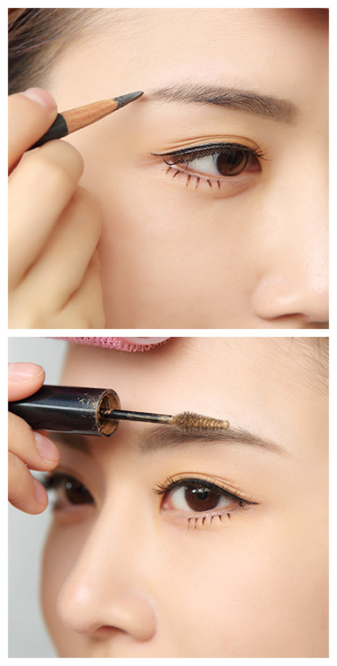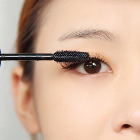 8、再用睫毛膏将自己的睫毛与假睫毛刷到一起